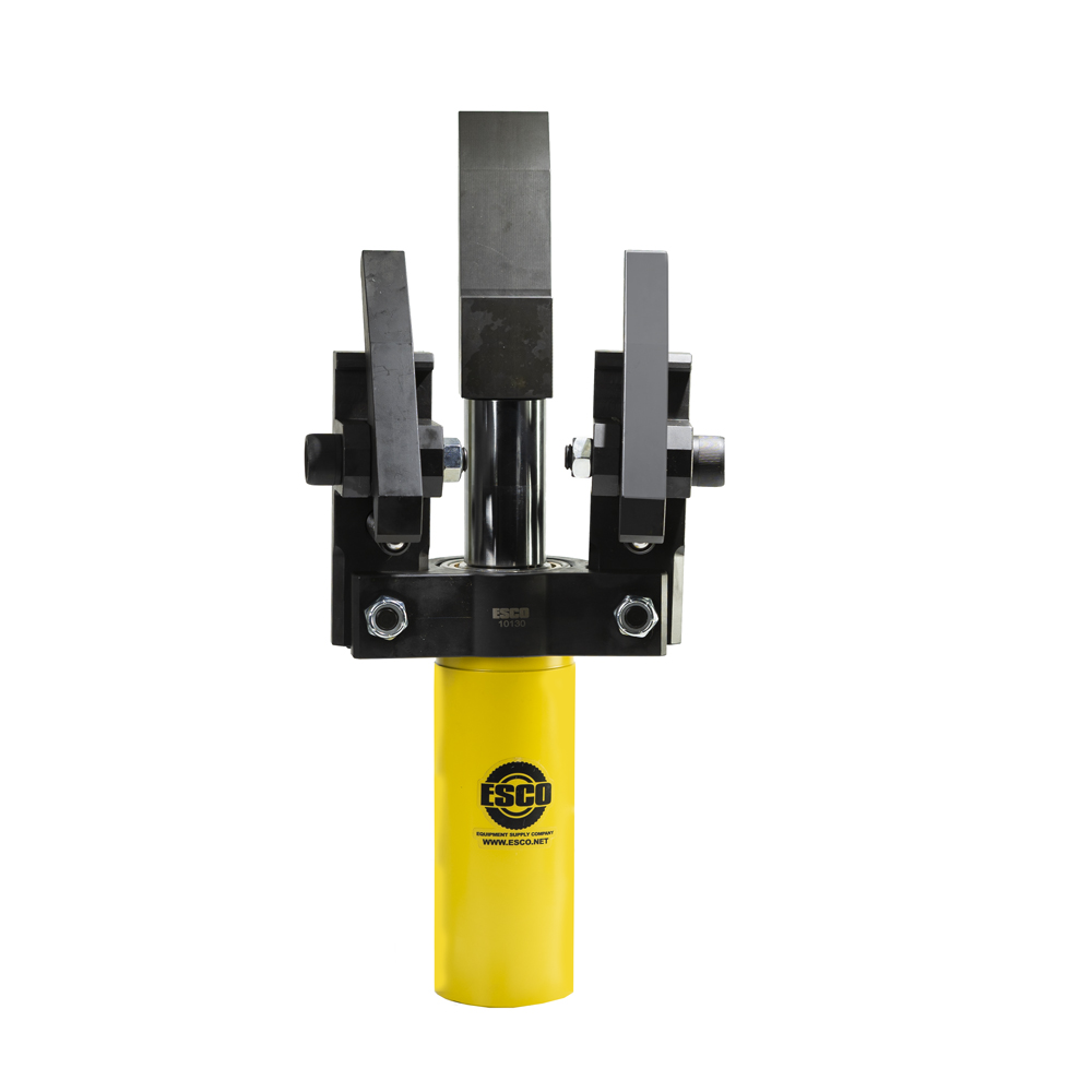 The ESC3000 OTR Giant Tire Bead Breaker (MODEL 10144) is designed for use on large 5-piece rims 49 in. to 63 in. with pry bar/bead loosening pockets. This tools unique design aids in safely operating on a wide range of large OTR style tire/wheel configurations, including Rimex and Topy style OE Wheels. Fitted with long adjustable safety clamping jaws, allows for the bead breaker to break the bead, while maintaining clamping pressure on the wheel face, eliminating potential kick-off of the tool while breaking the bead. All ESCO Pro-Series hydraulic bead breakers are powered by heavy-duty rams/cylinders, capable of breaking the toughest of beads using any ESCO 10,000 PSI hydraulic pump(s).