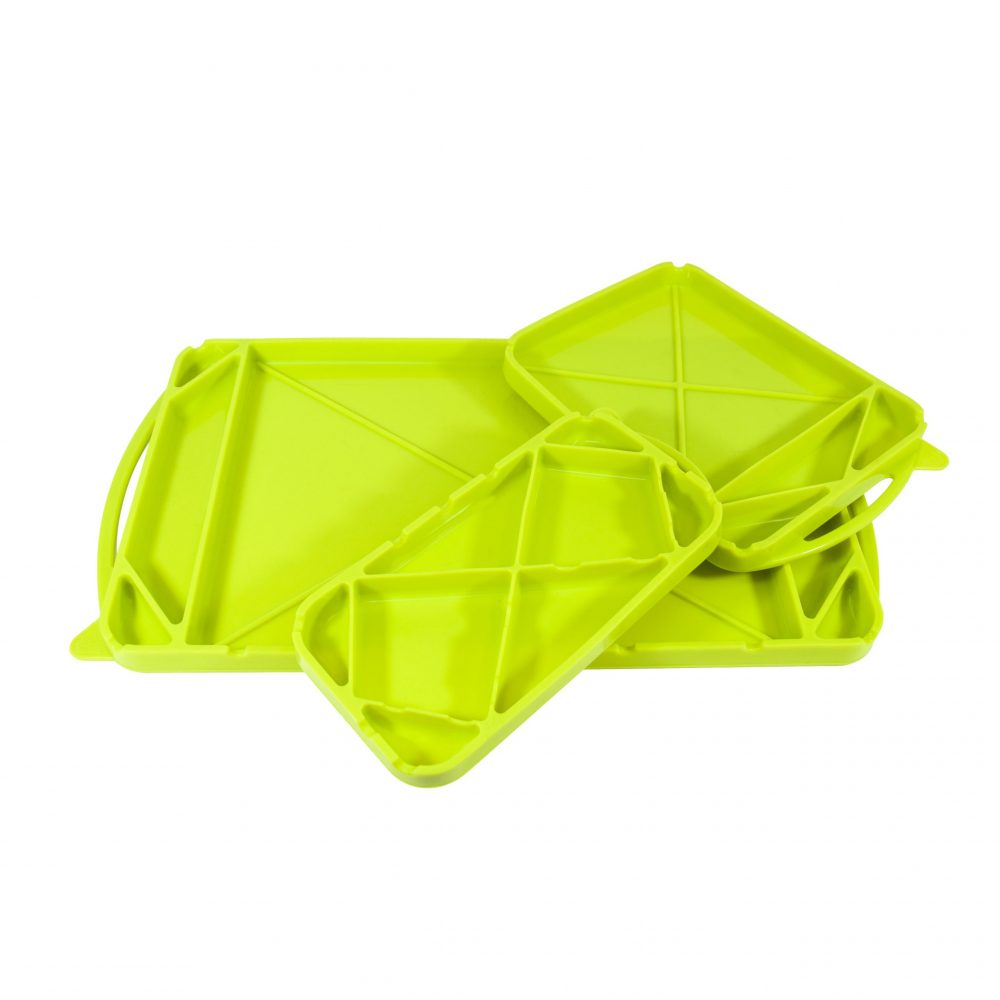 Casted out of food-grade silicone, The GeckoGrip™ tray series is the new, hassle-free solution to organizing and stowing your tools and small parts. Whether in the shop or field, the GeckoGrip™ Trays are designed to handle any conditions. Available hi-visibility yellow with a built-in carrying handle, the GeckoGrip™ trays are the perfect accessory for any garage, service van, shop bay, or warehouse.
