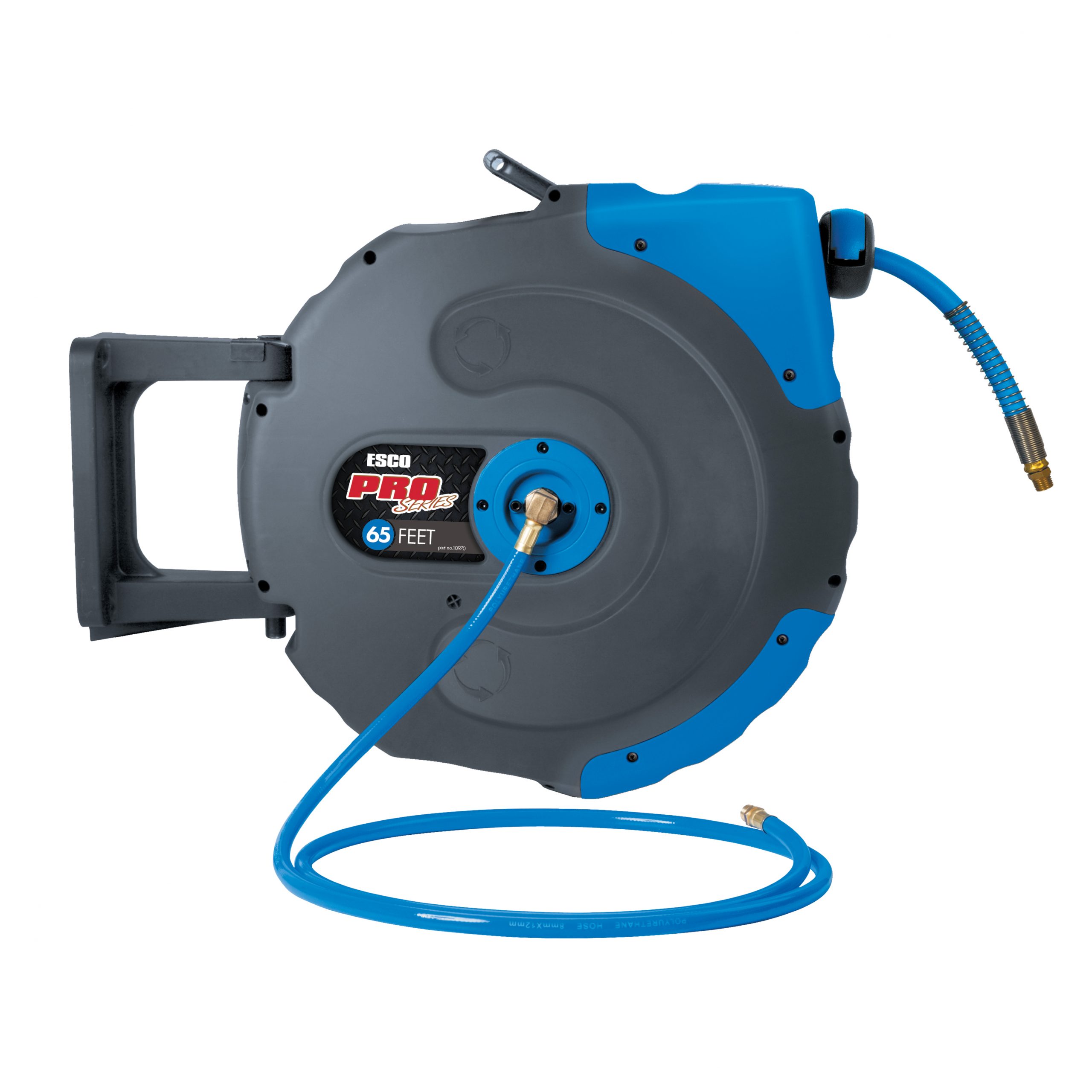 The ESCO Pro Series Air Hose Reels (Model #10970) are designed for professional and home working environments. Cased in a fully protective outer shell, these hose reels with withstand elements like dirt and other contaminants that can damage and alter the functionality of the hose reel and its components. Each unit comes equipped with a heavy-duty swivel mounting bracket that can be position to “swivel” or stay stationary as well as an easy to adjust hose stop.