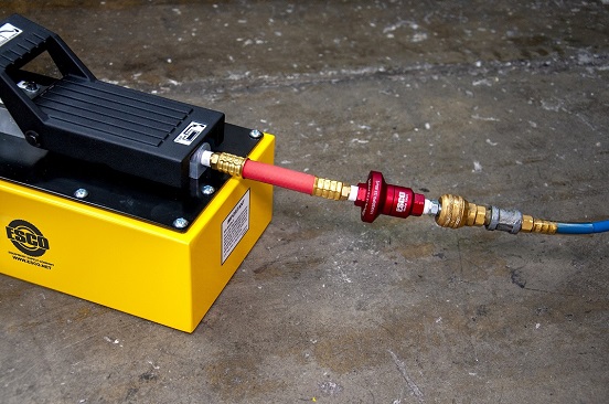 In the circumstance of air regulation, regarding air-powered equipment, less is more. For air/hydraulic pumps, the lower recommended air pressure allows for an air motor to run at maximum efficiency. Overworking your compressor or tools will eventually lead to failure, causing equipment downtime and the expense of repairs or replacement. For an accurate flow of air and to prevent any “pulses,” typically initiated when air compressor cycle and pressure builds within the compressor tank and air hose lines, consider adding a simple, affordable regulator or air pressure reducer to your equipment air line assembly.
