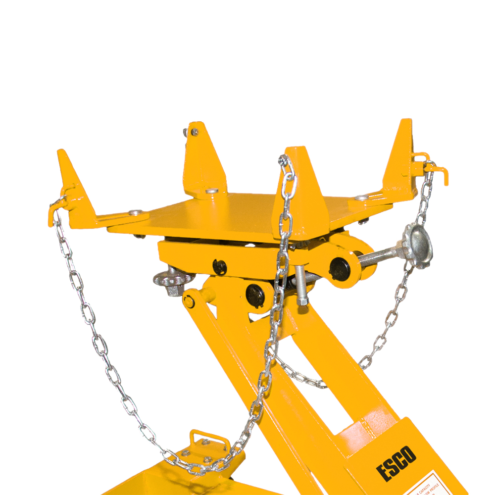 The Yellow Jackit 2.2 Ton (4,400 lbs.) Transmission Jack is designed with heavy duty lifting in mind. Designed with maximum strength steel and a hefty weight capacity of 2.2 Tons (4,400 lbs.). The units also come with swiveling casters to make it easier to roll across concrete garage floors; making it easier on the technician when removing/installing the transmission. This product is designed for Heavy Duty Truck, Commercial Truck, Bus, Agricultural, Construction equipment and machinery. Made to Conform to ANSI Standards.