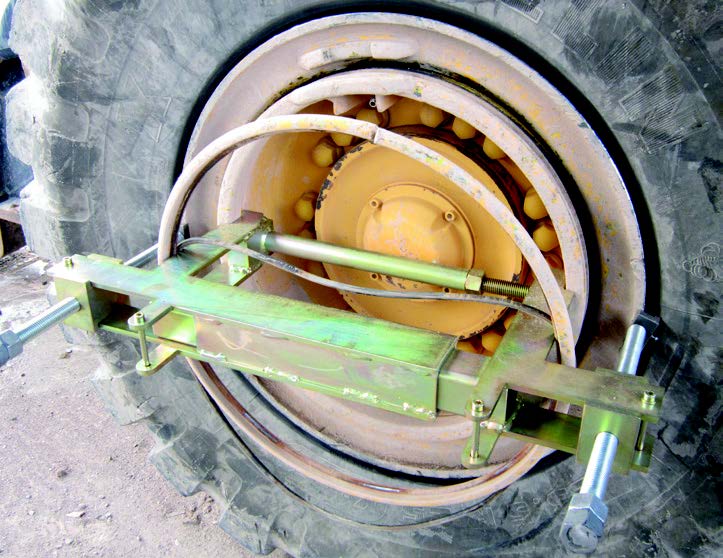 The OTR Large O-Ring Installer [Model #40807] is designed and built to manually install and remove O-Rings on OTR Tires 25”- 36”. The unit is also used to separate the inside and outside beads of OTR tires as well as assists in the removal and installation of the lock ring.