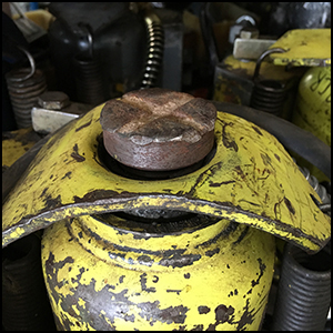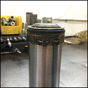 The issue I would like to bring to light is Point Loading. A point load happens when the load shifts from the center of the lifting pad to an outer edge. This will cause damage to the lifting pad (See Example) and also cause internal damage to the hydraulic cylinder walls and piston rod base (See figures 4 and 5). If you have had a jack piston rod that won’t retract you are more than likely experiencing a point load problem. Damage occurs mostly when the jacks are used to support the load throughout the job.