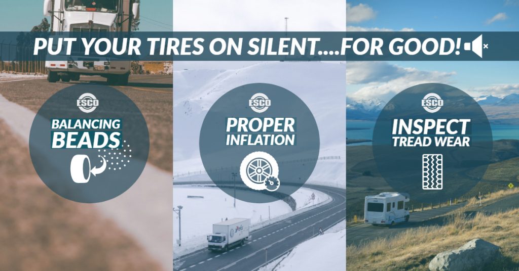 As costly as new tires and maintenance can be, road calls and downtime make for more expensive and stressful headaches for drivers. When faced with noisy tires the best process to follow is preventative maintenance with balancing solutions like beads or liquids, proper inflation, and frequent visual inspections. For more helpful tips or to check out ESCO’s product line of tire service equipment and inflation tools, visit www.esco.net.