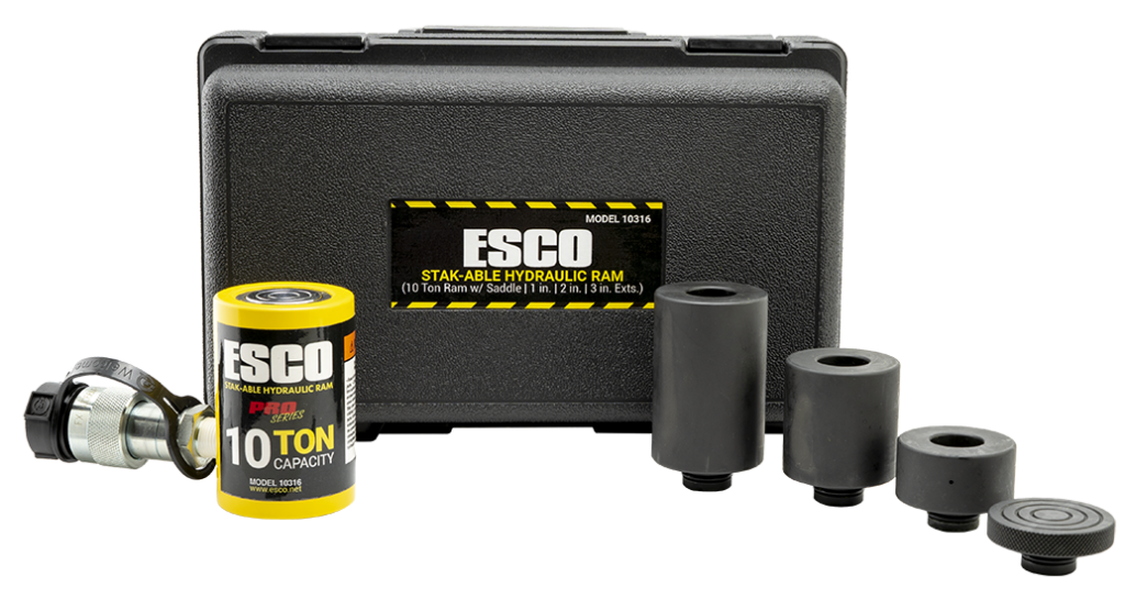 For any questions regarding the new Pro Series 10 Ton Stak-Able Ram Kit (Model 10316) or any other products available from ESCO please contact an ESCO Sales or Customer Service Representative at Toll-Free 1-800-352-9852 or Directly at 352-754-1117. For more information visit www.esco.net or email info@esco.net.