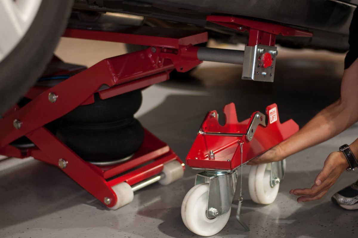 The miniLIFT “Lift & Move” is a superb fast compact lifting system, which enables you to work on the vehicle at the right height and also, easily move the vehicle to the next required area by quickly attaching trolley wheels to the lift.