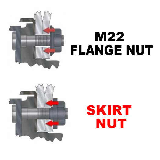 • Replaces ALL style M22 Flange Nuts on Hub-Piloted Wheels